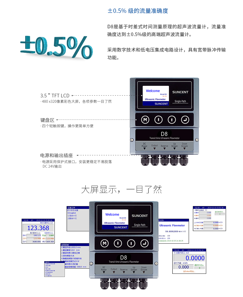 D8是基于時差式時間測量原理設計的超聲波流量計