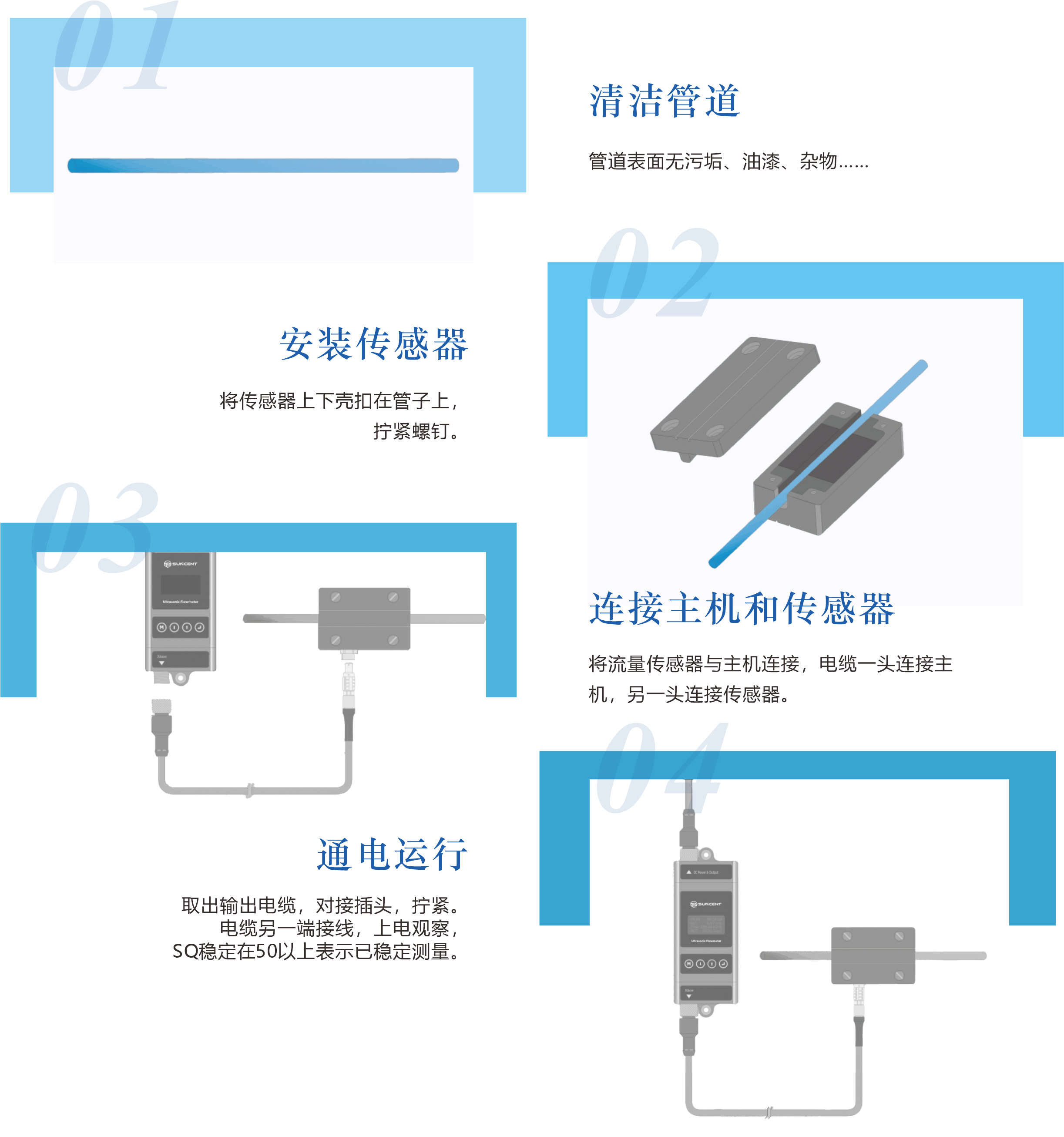 傳感器不直接接觸管道中的液體,不會對管內(nèi)液體造成污染,適合于對衛(wèi)生清潔度要求高的場合,如生物制藥過程,醫(yī)療器材和半導(dǎo)體設(shè)備生產(chǎn)中的液體流量監(jiān)控。